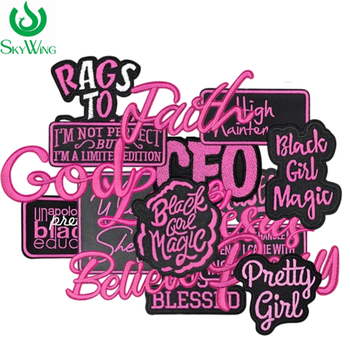 Parches de hierro con bordado de Letras a la moda rosa/negro con varias palabras inspiradoras para ropa, gorras, bolsos, decoración de Vaqueros
