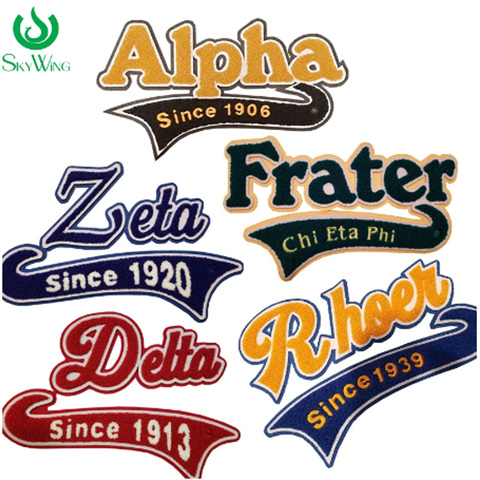 Stijlvolle Griekse Letters Rode Delta Sinds 1913 Zeta Sinds 1920 Alpha Sinds 1906 Ijzer Op Chenille Studentenvereniging Patch Voor Jas